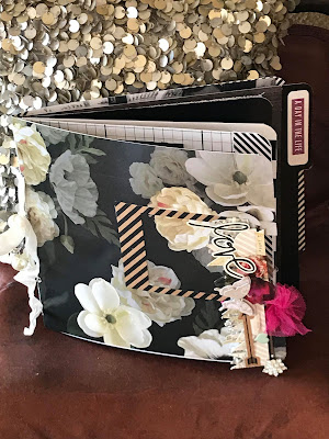 One of my favourite steps is too decorated the Front cover which I have used a banner, Insta frame, ephemera and bits of bling and ribbon to embellish.